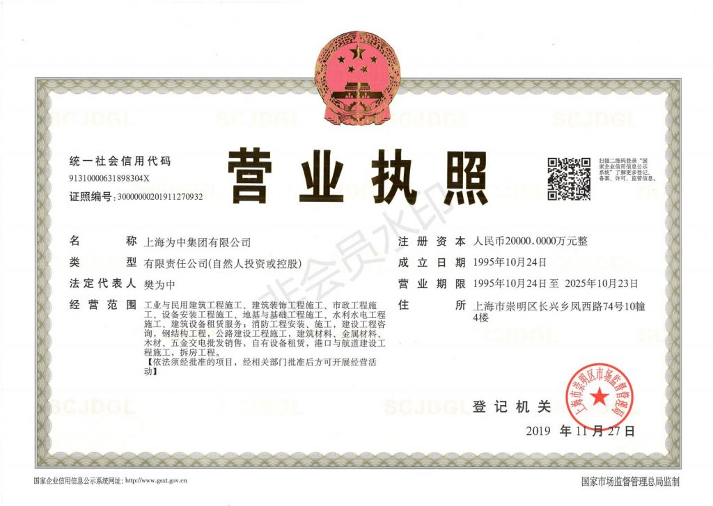 上海为中集团有限公司是一家大型多元化企业集团,旗下拥有十五家全资子公司及六家控股子公司,目前主要业务范围是港口建设,物流运输,地产开发,投资贸易,金融服务等。